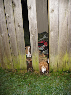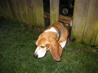 Well, it finally happened. Our punk of a basset hound finally did it. He got nosy and snuck over into the neighbor's yard. I figured this day would come, but was hoping his nose wouldn't take him on that adventure. I'm just glad he stayed there and didn't go any further! On several occasions, I've seen where my neighbor's gate has been left open. Thankfully, that wasn't the case tonight!