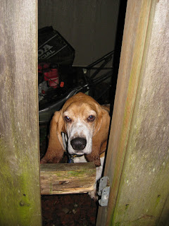 Well, it finally happened. Our punk of a basset hound finally did it. He got nosy and snuck over into the neighbor's yard. I figured this day would come, but was hoping his nose wouldn't take him on that adventure. I'm just glad he stayed there and didn't go any further! On several occasions, I've seen where my neighbor's gate has been left open. Thankfully, that wasn't the case tonight!
