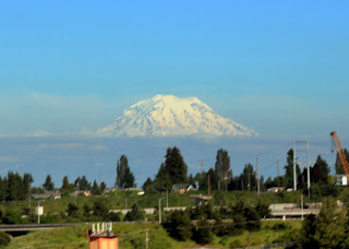 If there's one thing that I'll never get sick of...it's Mt. Rainier. It doesn't matter how many times we see it, I still feel like my mom and just want to go, "wwwwwwooooowwww!!!!" When we were driving down to Oly earlier today, James pointed out that it was a good day to see it, as he noticed it in the rear view mirror. Maybe it's because we're from Indiana -- the land of flat cornfields -- but I could stare at it everyday and never get bored. Love it!